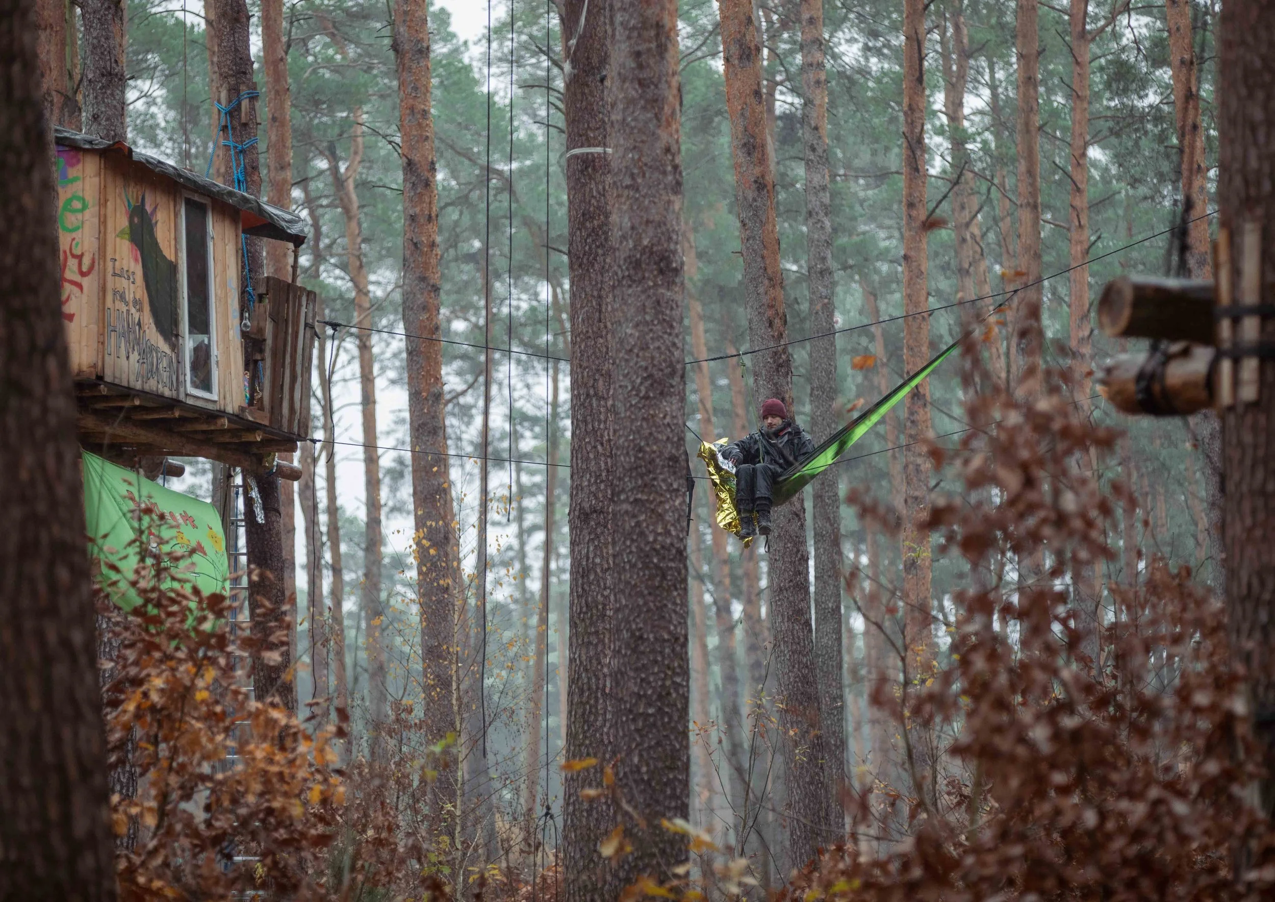 For 10 months, activists occupied a piece of forest in Grünheide in Brandenburg with tree houses, which is to fall victim to the expansion of the Tesla Gigafactory.